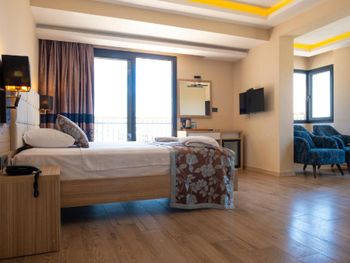 Отель совсем не приспособлен для отдыха с маленькими детьми. Например, на завтрак нет каш, и пюре на обед и ужин бывает не всегда, соответственно, накормить ребенка 7-8 мес нечем. Диетического питания нет. Про пюрешки вообще молчу - их нет. Очень удивило и огорчило, что к ужину собирается огромная очередь на вход, и персонал никак не разруливает, что как-бы с малышом на руках стоять по 20 мин не айс, терпеть голод в таком возрасте они не могут, к тому времени как подойдет очередь войти в ресторан, ребенок 1. устал 2. уже орет и не дает никому поесть. Вообщем, безучастность персонала к отдыхающим с совсем с маленькими детьми ужаснула, я рада что мы провели здесь всего 3 дня, а не больше. Еще отмечу детские стульчики, их всего 3, и они всегда грязные(( Как-то то раз я пришла и обнаружив стул в совсем непрглядном состоянии - попросила официантку убрать стул, на что та ушла , но и не вернулась помыть. Я подошла к управляющему - на что то ответил - сорри, все официанты заняты! Я просто взорвалась от такого отношения. Попросила убрать незамедлительно, ибо я не могу посадить ребенка (некуда) и соот-но , покормить. Официантка тогда все же подошла- убрала и молча ушла. К слову, мы переехали в другой отель и для сравнения там детские стульчики всегда были подготовлены к приходу гостей на ужин или обед - продезинфицированы, отмыты и накрыты (стол) пищевой пленкой, под которой лежала салфетка детская и нагрудник одноразовый. Данный отель не может обеспечить даже чистоту стульчика, не говоря уже о дезинфекции и прочих мелочах. Преимущественно (на 80%) отдыхают турки, на 30% остальные национальности, поэтому вся анимация проходит на турецком! аниматор старался переводить что-то моей дочери на английский , но в целом все на турецком. 1 день из 3 анимации не было вообще - ибо аниматор 1 , и у него выходной))) Когда мы приезжали , отель был полупустой , но нам дали номер с так себе балкончиком с видом на задний двор , хотя были номера с хорошим большим балконом.