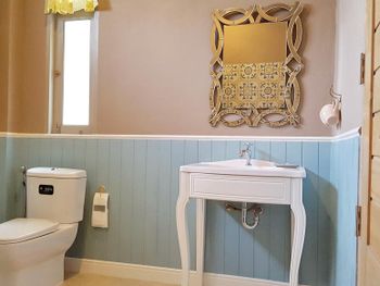 Вила немого получше, но тоже свои неудобства. Высокий свист от какой то техники присутствует тоже. Дверь в ванную открывается в такую сторону что ты можешь невольно попасть на ступеньку душа. В ванной шланг душа с элементами ржавчины... наверное это такой антураж)