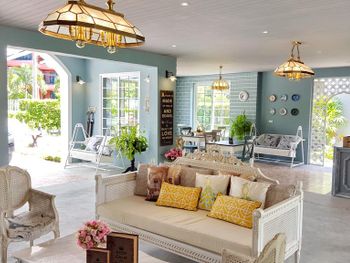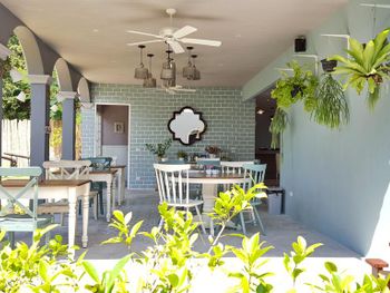 Небольшая территория с находящимся основный зданием и несколькими небольшими виллами, в одной из которых мы проживали семьей 2+3. В целом все приемлемо, неплохо даже я бы сказал. Но есть перекос какой-то в сторону украшательства, весь отель усыпан предметами декора, в стиле романтический романтизм, и на первый взгляд очень круто и на фотографиях супер смотрится. Но вблизи - тут старые рамы покрашены густым слоем краски, там чего-то отломано, тут непрактично сделано... Куча каких-то надписей, фигурок, но при этом ни одного шкафа в семейном номере, вещи вообще некуда разложить. Наверное этого и не требуется посетителям отеля, которые заезжают на 1-2 ночи перед отлетом. Расположение относительно аэропорта - 2 минуты езды. Бесплатный трансфер, это удобно. В номере чисто, грязи не заметил. Бассейн теплый, небольшой.