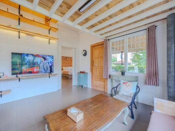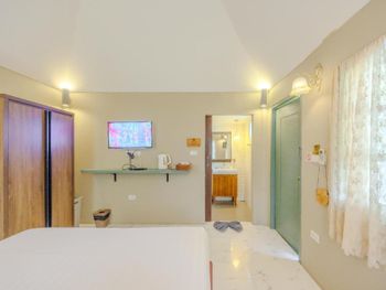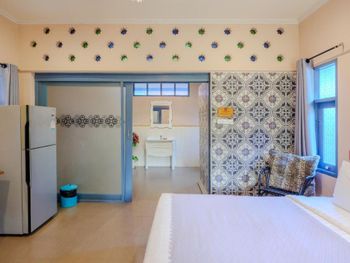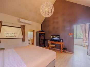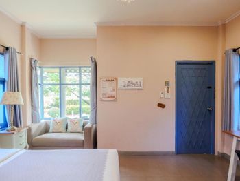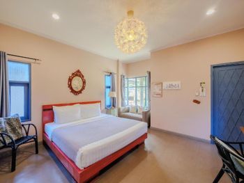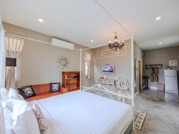 Очень уютный отель с зелёной, украшенной разными статуэтками территорией. Есть детский уголок, есть бассейн. В номере было чисто, уютно. Две бутылочки воды, чай/кофе/сахар. Места для размещения вещей очень мало. Шкафа или тумбочки нет, есть пара вешалок в открытом доступе. Скрипела кровать и от соседей какие-то скрины и стуки раздавались весь вечер. Это напрягало.