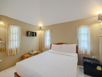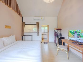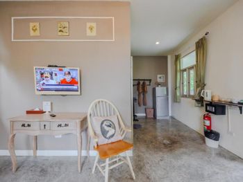 Это домики, мой за 2800 бат оказался самым маленьким и в комнате была только кровать по ширине и тумбочка. Стены серые. Угнетающая обстановка. Тв показывает только 7 тайских каналов и в помехах.