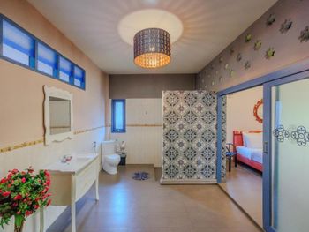 Небольшая территория с находящимся основный зданием и несколькими небольшими виллами, в одной из которых мы проживали семьей 2+3. В целом все приемлемо, неплохо даже я бы сказал. Но есть перекос какой-то в сторону украшательства, весь отель усыпан предметами декора, в стиле романтический романтизм, и на первый взгляд очень круто и на фотографиях супер смотрится. Но вблизи - тут старые рамы покрашены густым слоем краски, там чего-то отломано, тут непрактично сделано... Куча каких-то надписей, фигурок, но при этом ни одного шкафа в семейном номере, вещи вообще некуда разложить. Наверное этого и не требуется посетителям отеля, которые заезжают на 1-2 ночи перед отлетом. Расположение относительно аэропорта - 2 минуты езды. Бесплатный трансфер, это удобно. В номере чисто, грязи не заметил. Бассейн теплый, небольшой.