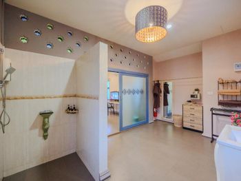 Вила немого получше, но тоже свои неудобства. Высокий свист от какой то техники присутствует тоже. Дверь в ванную открывается в такую сторону что ты можешь невольно попасть на ступеньку душа. В ванной шланг душа с элементами ржавчины... наверное это такой антураж)