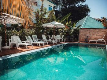 Отдыхали трое взрослых в одном номере. Номер просторный, дополнительная кровать с хорошим матрасом, спать было комфортно. Уборка производилась каждый день. Территория небольшая, но зеленая, ухоженная. Маски и ласты можно взять напрокат бесплатно. Удобное расположение: всё в шаговой доступности. Хозяин отзывчивый, помогает в решении всех вопросов.