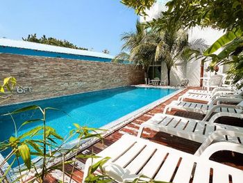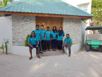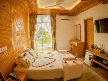 Прекрасный отель с ухоженной территорией, комфортабельными номерами, дружелюбным персоналом и бассейном. наша семья осталась в восторге от пребывания в этом месте. в номере есть все необходимое:холодильник, тихий кондиционер, фен, в каждой розетке стоят переходники для любой вилки. Очень удобные матрасы и подушки. Уборка в номере каждый день, смена полотенец тоже. Весь персонал говорит по-английски, всегда и во всем готовы помочь. В предыдущих отзывах читала, что завтраки не очень. как по мне, все нормально. Ограниченный выбор блюд обусловлен ограниченностью набора продуктов на локальных островах, вряд ли другие отели предложат что-то лучше. на завтраки дают омлет с сосисками, тосты с маслом и джемом, хлопья с молоком, выпечку сладкую и несладкую, помимо этого бывает традиционный мальдивский завтрак, состоящий из тертого кокоса с тунцом и луком и лепёшек, сок, чай, кофе. Так что голодным остаться трудно. Имеется большой перечень платных развлечений. Мы брали плаванье с акулами и мантами, плаванье с черепахами, снорклинг на соседних рифах, также была одна бесплатная поездка на песчаную отмель. Всеми услугами остались очень довольны, съемка на GoPro была в подарок. Цены на активности практически везде одинаковые, так что смысла искать что-то в другом месте я не вижу. Ребенок остался в восторге от бассейна, попугая и игуаны, живущих на территории отеля. Также хочется отметить, что сам остров очень приятный и чистый. каждый вечер местные жители подметают опавшие листья и цветы, гулять по улицам одно удовольствие. Можно не боясь ходить босиком, дорожки чистые без острых предметов. отель находится на центральной улице, вдоль неё расположены сувенирные и продуктовые магазинчики, очень удобно.