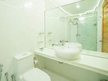 Немного не понятно, почему душ спроектирован таким образом, что вода из него все равно вытекает на пол и далее стекает в специальное сливное отверстие. приходилось все время кидать полотенце на пол и мочить его, чтобы не разносить воду дальше по ванной комнате. маленький бортик решил бы проблему. Но, насколько я поняла, на локальных островах так везде, видимо, это национальные особенности. На самом деле это не страшно и ни коем образом не отразилось на нашем отдыхе