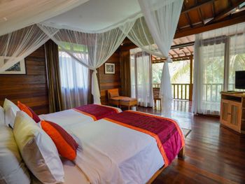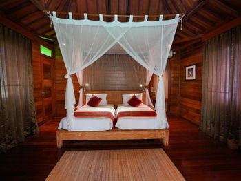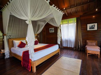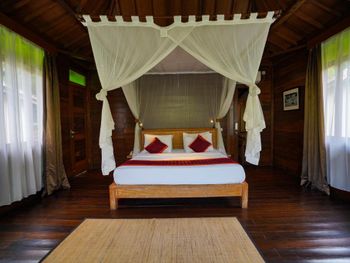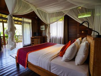 Очень грязный номер! Декоративные Подушки , шторы очень грязные, неприятно притрагиваться. Стойкий запах сырости в номере. Главный вход в номер через темный грязный коридор без окон, им ни разу не пользовались , ходили через балконную дверь. На балконе очень много муравьев. Территории отеля нет - только вход в номера , ресторан и ступеньки вниз до бассейна и обратно. Первый день бассейн не работал , был грязный, хотя цель была подкупаться в бассейне с видом на джунгли. Покрывала на лежаках в пятнах , подранные. Завтраки невкусные. Такое качество отеля очень дорого стоит , жили в гестхаусах в убуде, намного аккуратнее , чище , приятнее и дешевле. Не советую.
