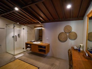 Уборка перед заездом ужасная. Пол в санузле был заляпан мочой и плохо пахло. Виллы старые, обшарпанные. Замок в санузле был сломан. Попросила персонал починить, а они мне сказали, что сломанный замок - это концепция отеля! К бунгало и бассейнам ведут крутые лестницы, перил нет! В дождь очень скользко и некомфортно спускаться.