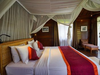 Кондиционер в течение отказывался работать от слова совсем. А вот ночью работал на полную. Днем было нереально жарко, ночью - адски холодно. В общем, в нем смысла не было вообще. Плюс вилла находятся на некотором удалении от ресторана\\ресепшена. Идти приходится вверх по лестнице (и не одной). Так что вспотеть вы успеете еще до того, как выйдете из отеля. Завтраки же печальны (а-ля карт из 3-4 блюд, на которые уже дней через 5 ты даже смотреть не сможешь). Расположение. Ооо, это отдельная история. Несмотря на то, что отель позиционирует себя как "близкий к центру", близок он только на карте. А на деле вам придется нарезать нехилый крюк (км 2-2,5) чтобы оказаться в цивилизации. Если же вам лень каждый день бегать марафон - на улице есть с десяток заведений, некоторые вроде как неплохие. Ах да, если вы возвращаетесь с заходом солнца в отель - смотрите под ноги. На дороге вас могут ждать змеи, которые выползают с рисовых полей, окружающих отель.