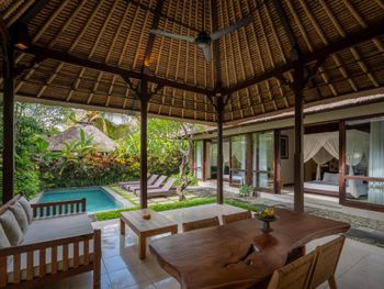 Отель находится в центре,но заходя в него, попадаешь в джунгли и не слышишь ничего,что происходит за пределами и как там кипит жизнь. Максимальное уединение и релакс. Отличное местоположение. Рядом храмы,парк обезьян, много кафе, вкусные рестораны. Очень красивая территрия. Приходят в гости обезьянки(не оставляйте ничего ценного,иначе, все вскроют,поедят, намусорят) и ящерки...никто не боится,у всех своя жизнь. Приличные завтраки, всегда есть что поесть. Общий бассейн всегда пустой,с радостью спускались поплавать. Ванна на вилле мечта инстаграмма). Бассейн с прохладной водой.Чистили каждое утро. Персонал дружелюбный, улыбчивый. При полной загруженности отеля, было полное ощущение,что там мы одни и персонал. Убрать некоторые нюансы и мы с радостью вернемся..