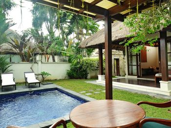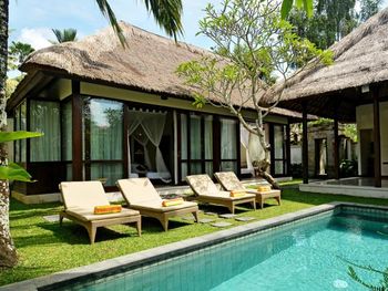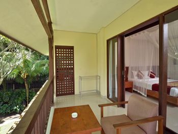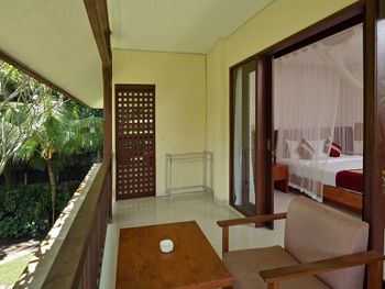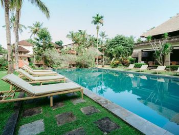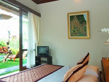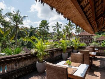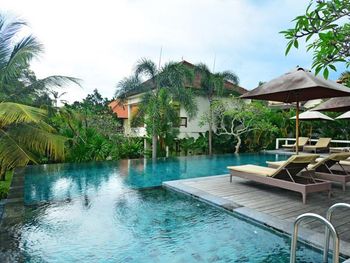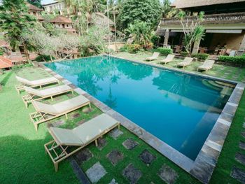 Очень красивая и зелёная территория два бассейна,хорошее расположение отеля в центре Убуда рядом с лесом обезьян!!!