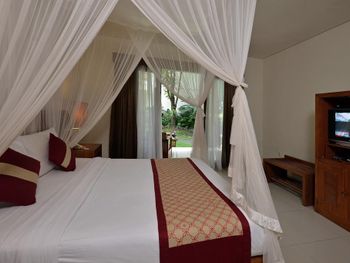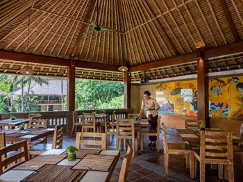 Территория отеля на двух берегах реки очень живописно. Имеет два выхода, хорошо расположен от всех главных достопримечательностей Убуда. В номерах ближе к реке для города очень тихо.