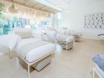 Спа-салон состоит из 4 павильонов, где предлагают массаж и различные процедуры, такие как ароматерапия. Гости также могут воспользоваться площадкой для йоги или посетить занятия йогой, которые проходят каждую среду.