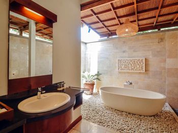 Отель находится в центре,но заходя в него, попадаешь в джунгли и не слышишь ничего,что происходит за пределами и как там кипит жизнь. Максимальное уединение и релакс. Отличное местоположение. Рядом храмы,парк обезьян, много кафе, вкусные рестораны. Очень красивая территрия. Приходят в гости обезьянки(не оставляйте ничего ценного,иначе, все вскроют,поедят, намусорят) и ящерки...никто не боится,у всех своя жизнь. Приличные завтраки, всегда есть что поесть. Общий бассейн всегда пустой,с радостью спускались поплавать. Ванна на вилле мечта инстаграмма). Бассейн с прохладной водой.Чистили каждое утро. Персонал дружелюбный, улыбчивый. При полной загруженности отеля, было полное ощущение,что там мы одни и персонал. Убрать некоторые нюансы и мы с радостью вернемся..