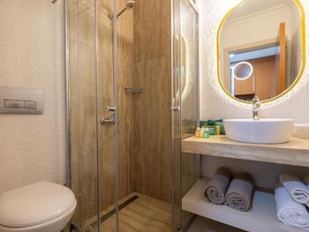 Все номера курортного отеля Petunya Beach оформлены в современном стиле с использованием пастельных тонов. В каждом номере установлен мини-бар. В собственной ванной комнате есть бесплатные туалетно-косметические принадлежности и фен.