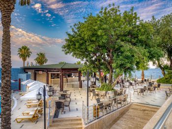 Дружелюбный персонал, все очень старались хорошо выполнить свою работу. Питание очень понравилось! Вкусно, спасибо шеф-повару и всей его команде! Море было великолепно! Заход в море - крупная галька, мы брали акватапочки, но можно и без них было обойтись. Естественно, по традиции, лежаки очень рано занимались и стояли пустыми с положенными на них полотенцами в то время, как люди искали свободные. Тут уж ничего не поделаешь:::))) Очень порадовала работа ночного ресторана: наши родственники смогли покушать, когда очень поздно приехали в отель и когда очень рано выезжали из отеля (6 утра). За это большое спасибо! Вообще, я ожидала даже меньше от этого отеля, исходя из цены. Поэтому отель даже порадовал::)))