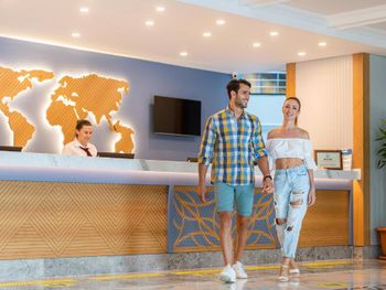 Обслуживание на ресепшене отличное. Спа понравился.Персонал аниматоров очень дружелюбные и отзывчивые.Територия отеля чистая, и уютная.