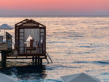 Обслуживающий персонал в ресторане, который буквально вырвал из рук полупустые тарелки. Маленькая территория. Нет прямого выхода из ресторана к пляжу (двери тупо заблокированы), а также ни одной террасы. В снек-баре не предлагаются напитки. А в баре нет никакой еды.
