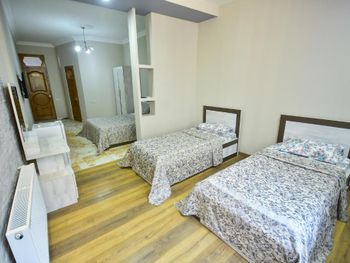 некоторые части постели пахли использованными(UPD постельное белье было чистым, к нему нет претензий, кровати было три - две односпальные и одна двуспальная, уложили лишь одну двуспальную без уточнения, как было бы удобнее, одеяла и подушки пахли неудовлетворительно, видно что используются давно , но сменная часть кровати была чиста) дверь по ночам закрывается без предупреждения(будьте готовы, что если вы планируете поздно прийти, то вам придется ломиться и долго ждать, нажимая на кажущимся нерабочим звоночек) очень слабое шумоподавление(слышно все, что происходит в здании, особенно с утра, будит и мешает спать) есть непонятные окна из номера в туалет и над дверью в коридор, откуда светит коридорная лампа прямо на кровать(просто fyi) советую хозяину отеля поработать над объективными недостатками своего заведения и над своим отношением к гостям, нужно уметь признавать недостатки, когда они есть и принимать критику, как взрослый человек. (если бы не неподобающее поведение хозяина, то настолько дотошным не был бы обновленный отзыв)