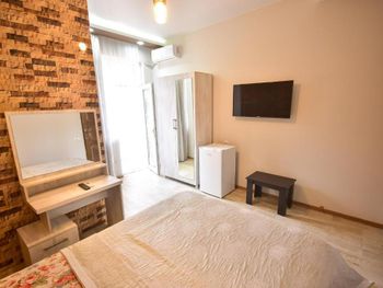 Удобное расположение: до моря 7-10 минут. Большая комната с коридором. Чистота, удобная кровать. Кондиционер в номере, большой балкон. Суперский напор воды в душе и регулировка горячей воды. Принадлежности для мытья в наличии. Приветливый и отзывчивый хозяин.