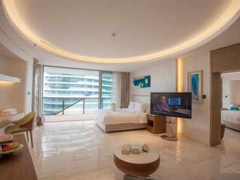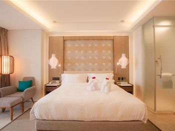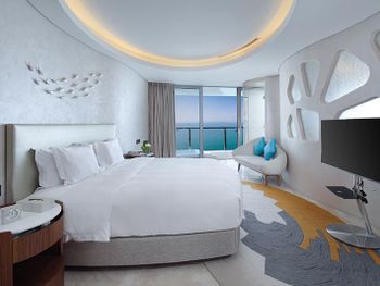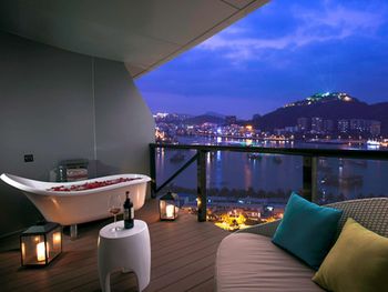 Невероятный Отель с потрясающим видом с балкона! Всем туристам бухт Санья и Додунхай советую хотя бы на денёк поселиться в этот отель и не пропустить иллюминацию на зданиях отеля с 20:00 до 21:00. Лежать в ванне на балконе, попивать шейк и смотреть на сверкающие здания на фоне моря - это непередаваемо! ???? (советую брать номер с видом именно на здания, а не на море и бухту Санья. Море вы и так посмотрите. ????)