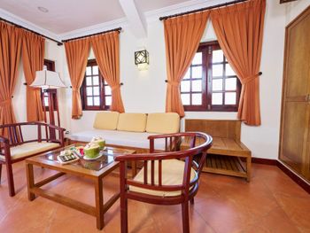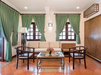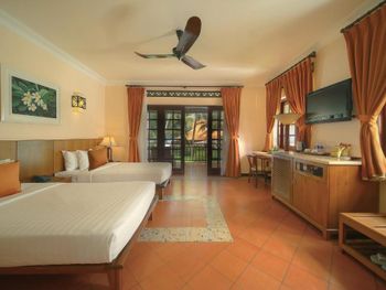 Великолепная большая территория, очень красивый отель. Много растений и цветов, за которыми постоянно следит персонал. Наша вилла была прямо около пляжа, с красивым видом на море. Номер просторный и комфортный, в номере имеется все необходимое . Очень понравился живописный бассейн с водопадом, который спасал в сильную жару. Сотрудник у бассейна сразу, как только мы входили в бассейн, включал нам водопад. Очень приветливый персонал на ресепшн, и в баре у бассейна. Был предложен бесплатный массаж, что, конечно, порадовало. Завтраки разнообразные, с хорошим выбором блюд и красивым видом, что дополнительно повышало аппетит. Рядом с отелем несколько небольших кафешек с морепродуктами. На такси недалеко и недорого до Фантхьета, где много ресторанов и кафе со свежайшими морепродуктами, магазинчиков и аптек. Рекомендуем.