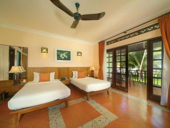 Это старый 3х звездочный отель. Он просто не соответствует уровню 4 звезды. Как бы не старался персонал и не был приветлив, но все номера уставшие и старые. Нам дали бунгало с неприятным запахом, плохо убранный, с мертвым огромным тараканом, в душе на улице отваливалась ручка. Мы попросили поменять, персонал нам помог. Другой номер был без запаха и таракана)