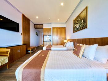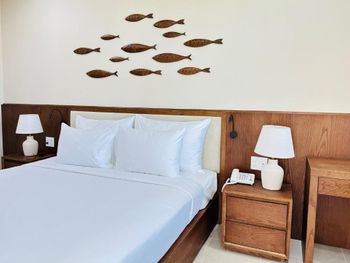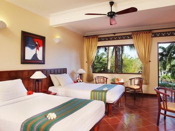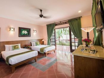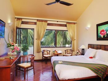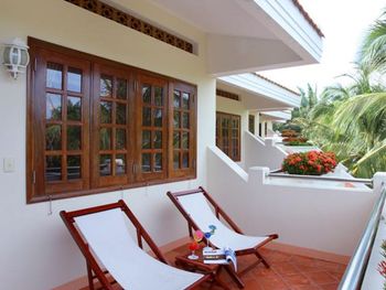 Лично нам понравилось всё. Отличный пляж, волны умеренные - мы купались все две недели. Чистый большой бассейн с тёплой водой, большая зелёная территория. Мы брали виллу с видом на море, жили практически на пляже, засыпали под шум моря. Матрас и подушки удобные, кровать огромная. Душ тропический - просто здорово. Большая веранда с удобными креслами. Убирались хорошо. Три раза приносили корзину с фруктами, каждый день - чай, кофе, вода в номер без дополнительной оплаты. Питание - завтрак. Нам с мужем очень понравилось. Всё свежее, вкусное, разнообразное. Полотенца для пляжа в достаточном количестве, лежаков и зонтов всем хватает. Персонал отеля очень доброжелательный, отзывчивый, любезный. Всегда с улыбкой, стараются помочь и сделать все для гостей. До Муйне ехать минут 5 на такси, по деньгам в районе 3 долларов, поэтому мы мопед брать не стали. Ужинать и на массаж ездили в Муйне. От отдыха только положительные эмоции. С удовольствием приедем ещё