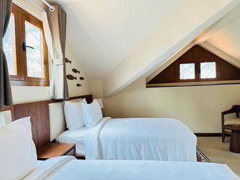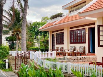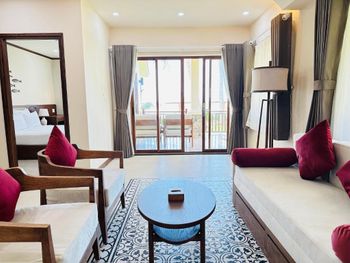 Отель с хорошей ухоженной территорией. Жили в вилле семейной. Все виллы состоят из двух частей. С одной стороны семейная вилла со вторым этажом (на 2 этаже свой санузел). с другой стороны вилла где спальня и гостинная. То есть у вас не отдельно стоящее здание, а здание на 2-х соседей. (мне на сайте и на букинге это был не понятно). Отель находится в 3 км от центральной улицы муйне. на такси 7 минут. 65000-80000 донгов в одну сторону. Завтраки нормальные. из особенностей фо-бо, фо-га, вьетнамские блины с различными начинками. отель не новый. но со свежим косметическим ремонтом. большой. широкий песчаный пляж. рядом несколько кафе и баров с местной но не острой едой. есть европейское меню - но не стоит ожидать от вьетнамцев правильно итальянской пасты.