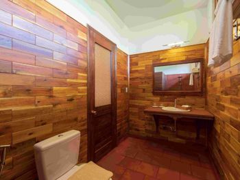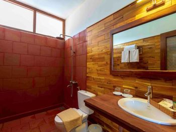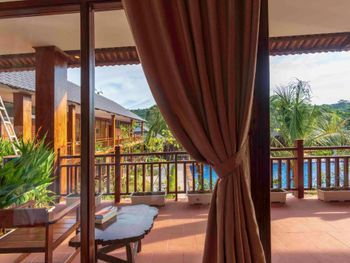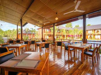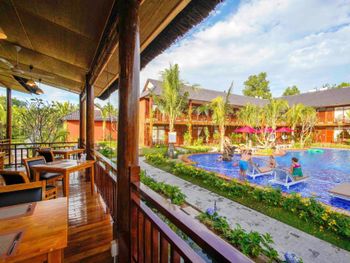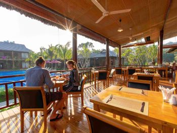 Отель находится в джунглях. Воды горячей нет, напор слабый. Мы туда поехали, чтобы побыть в тишине, но не тут то было. Семьи с маленькими детьми, живущие там месяцами, крик, гам, кастрюлями гремят, пляжа нет даже далеко. В первый же день после заказанного обеда нас обманули со сдачей, потом еще раз выставили счет не за 2, а за 5 блюд, пришлось ругаться. Кто то писал, что хозяин очень хороший, помогает и отвозит куда нужно бесплатно. Нет. Как только он понял, что мы не готовы платить дополнительно за услуги, потерял к нам всякий интерес. Байк брали не в отеле, а сами вдоль дороги нашли у местных.