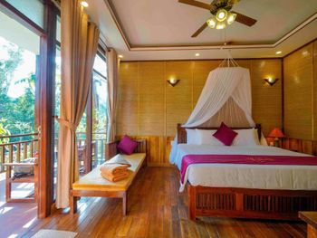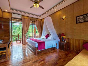 Локация утопает в зелени, бассейн, плавают рыбки, атмосфера спокойствия и релакса, хорошие завтраки (фо, омлеты, фрукты, йогурты), отличный персонал, приемлемые цены, на 3 фото рождественский ужин за 12$. Номер просторный, большая кровать с хорошим матрасом, панорамное окно на джунгли) насекомых нет, хорошая уборка. Очень уютное и милое место