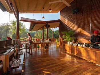 Сняли бунгало, в итоге поселили в простой номер (хоть и сказали, что улучшенный). Администратор не сильно приветливый. Завтраки однотипные , особо не наешься. Уборки не было 3 дня. Только приносили воду и пакетики с чаем и кофе.