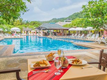 Завтрак стандартный, соки не очень (не свежевыжатые), в остальном все стандартно: яичница, тосты, колбаса, ветчина, вторые блюда, супы, фрукты (ананас, арбуз, дыня, банан, "драконий глаз"), супчики, второе и пр. Все номера с выходом к бассейну, территория отеля состоит из одноэтажных корпусов вокруг пяти бассейнов. Отель немного староват, но ухожен, чисто и аккуратно как на территории, так и в номерах. Заблокировался сейф, сотрудница на ресепшене все четко поняла и через 20 минут вопрос был решен. Отель расположен удачно, близко выход к пляжу Ката, в пешей доступности пляж в бухте Ката-Ной (супер пляж!).