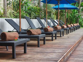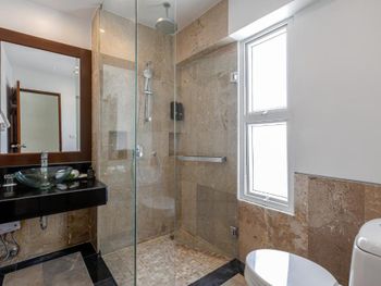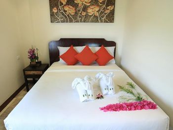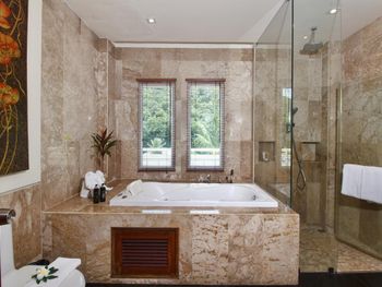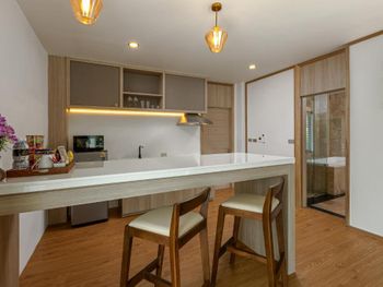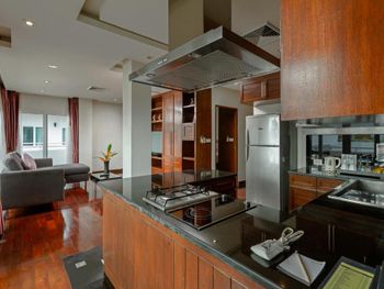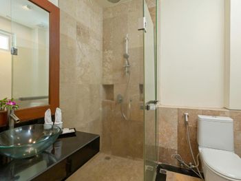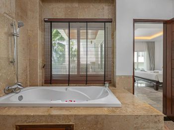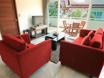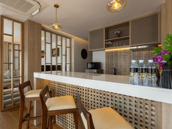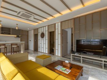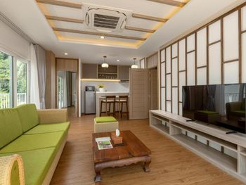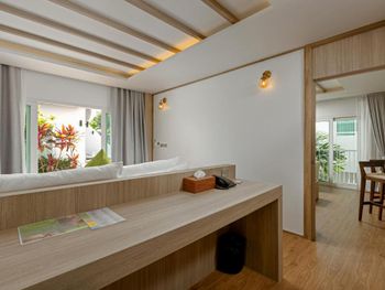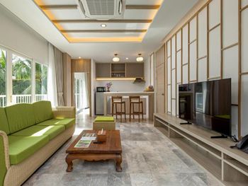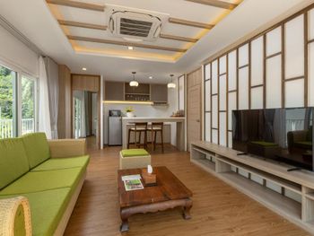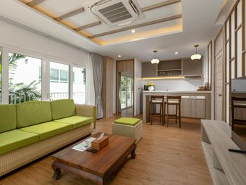 Люксы оформлены в элегантном стиле с использованием декоративных элементов из дерева и тростника, тайских тканей и произведений тайского современного искусства. Во всех из них имеются телевизор с плоским экраном, DVD-плеер и просторная гостиная зона с мягким уголком.