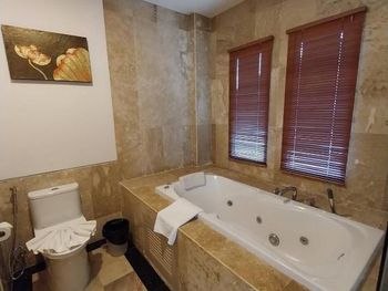 Отдыхали вояжом по Тайланду.Это один из 7 отелей в нашем отдыхе! Он единственный- ужасный! Всегда стараемся выбрать достойные варианты. Реальность не соответствует ожиданиям! Не понятно кто пишет положительные отзывы .грязно !Номерной фонд очень старый ! Не обновлялся! Диваны просижены и засалены! Сидеть на них не приятно , приходилось стелить полотенце чтобы присесть ! Номер большой, но находиться в нем не приятно и не хочется! Присутствует неприятный запах . Горячая вода в одной из ванной комнат постоянно отсутствовала. Лежаков у бассейна 10 штук на весь отель! Вишенка на торте: на второй день проживания у мужа стали выступать красные прыщики просто на глазах, количество их росло ! Пришлось обратиться к врачу! Официальный диагноз : чесотка от матраса в отеле! В результате: рекомендации врача - мазь 2 раза в день, 3 вида таблеток : по 5 штук 3 раза в день! И кожа в красных волдырях, ужасный зуд!!! Не выбирайте этот отель , если не хотите испортить отпуск!