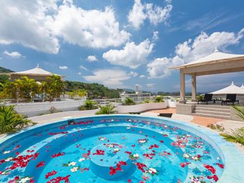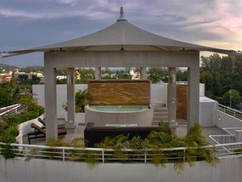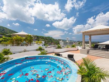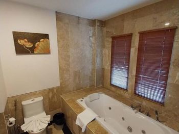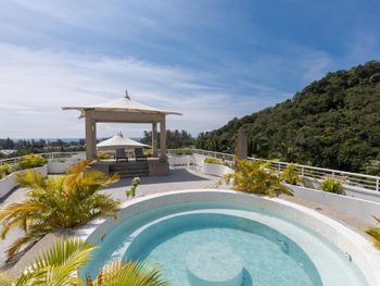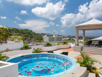 Джакузи не работала, ни в номере ни на крыше, в номере вообще протекала, мылись а душе, воды горячей не было, мылись под холодной, пляж далеко, обратно подъем в гору!