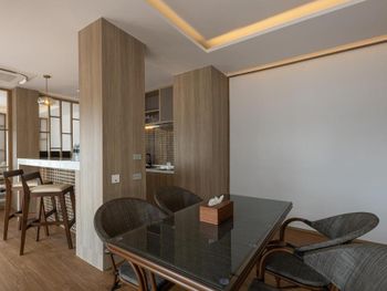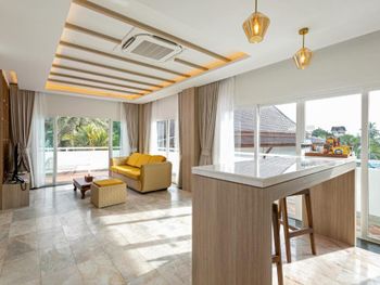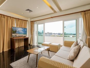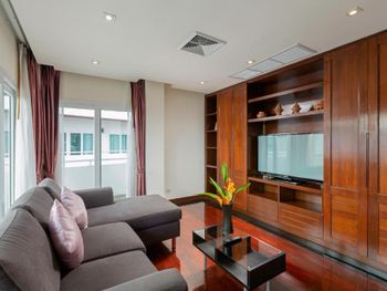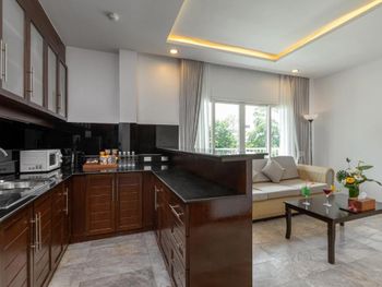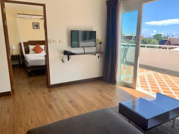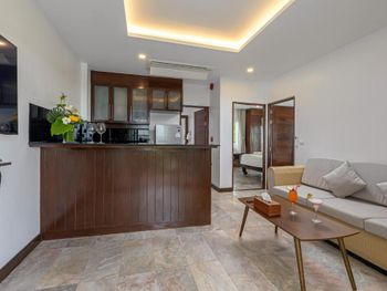 Неприятной неожиданностью было оплачивать дополнительную кровать для ребёнка 1000 бат./сутки, хотя бронировали номер на 5-х с 2-мя спальнями, но 5-го спального места там не оказалось. Зона гостиной по факту оказалась маленькой и с малюсеньким диваном. Хорошо, Мина дружелюбно предложила нам на последнюю ночь номер просторнее. Расположение, если идти пешком до пляжа далековато. У нас была машина, но если бы нет, до нужно искать отель поближе к побережью.