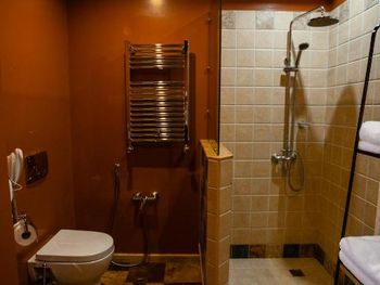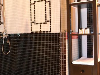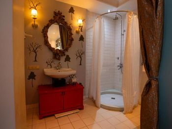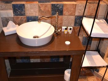 Пошарпанная мебель, отсутствие двери у душевой кабины (и как следствие очень скользкий пол), отсутствие мыльницы и некоторых банных/гигиенических принадлежностей.