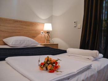 Маленький, очень симпатичный и уютный, как показалось, отель. Большой плюс, что в номере есть и тапочки,и шампуни, и все необходимое. Много русских каналов. В комнате был балкончик, хоть и маленький. Вообще комната очень приятная. Претензий по уборке нет. На ресепшене ребята очень хорошие