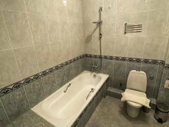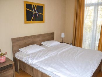 Wi-Fi очень слабый, выключался постоянно и не тянул даже почту. Очень высокая слышимость. Запах еды с завтрака держался половину дня в комнатах. Воды в нагревателе хватало на одного человека, все остальные мылись в еле теплой воде.