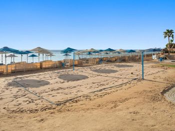Встретили нас на ресепшене при заселении с какими-то странными шутками. Может менеджер и не шутил, а хотел с нас заработать деньги. Говорил, что у нас забронирован номер не family , а стандарт. После того как мы показали бронь на букинге, стал смеяться и делать вид, что он шутит. Ужасное ощущение , мы с дороги устали и хотели быстрее пойти в номер с детьми, чтобы отдыхать, вместо нормального приветствия , какие-то странные «шутки», которые выглядели как вымогательство или обман на номер. В номере из канализации воняло мочей постоянно. Воду ужасная, ей даже рот полоскать нельзя. На этой воде готовят еду, расстройства желудка у всей семьи даже после возвращения домой. В Мини баре только вода. Щетки зубные дали только при заселении, тапочки как -будто из бумаги. Лосьон для тела пришлось выпрашивать. Полотенца постоянно не докладывали. Ела очень примитивная. Из фруктов только : яблоки, бананы и апельсины, редко гуава. Первый раз в жизни видела алкоголь в пластиковых бутылках ( джин, ром, водка) такое даже страшно пробовать. Бутылки в водой с газом не дают на большой стол, наливают только по стаканам у бара. Персонал в отеле к отдыхающим относится по не братски , моих детей постоянно пытались трогать весь персонал за голову, уборщики грязной посуды подходили и щелкали у лица детей во время еды у лица. Дикая дикость, отсутствие сервиса . Это не пятизвездочный отель , а максимум 3+. На территории работает дайвинг центр и сотрудники бесконечно ходят по пляжу и подают всякие услуг : Багги о пустыня, полет на парашуте, катание на лодке и тд. Мы купили багги, когда приехали, вместо 5 двухместных багги, оказалось 4 . Один из которых не заводился, через полчаса попыток он всё же завелся. Мы узнали в пустыню, там сделали остановку и Багги больше не завелся. Возвращались все друг на друге. Вместо 1 часа 20 минут которые мы оплатили, мы катались 20 минут. В конце записали видео, где человек, который нас катал, сказал, что деньги нам вернут там, где мы оплачивали.