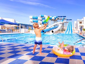 мало Пальм,деревьев ,ландшафного дизайна подтянуть хорошенько надо бы,.а в аквапарке стоят очень недоброжелательные парни,которые не знают что и как учить безопасности.Сыновья ударились при спуске ,а они говорят, что надо было ноги по иному ставить мы не виноваты.