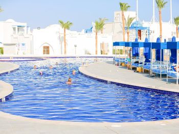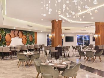 Очень шумно. На ресепшене приходилось долго ждать, возникшие вопросы или просьбы решались с трудом. Очередь в аквапарке по 15-20 минут. Риф не интересный, людей больше чем рыбок. Рядом с лежаками спортивные площадки, мяч иногда прилетал. Персонал какой-то замученый, во время обеда около стола стояла стремянка, на ней человек с ведром и тряпкой мыл окна. Откуда такой рейтинг и цены непонятно. Побывали ещё в двух отелях с рейтингом 7,2 , они оказались намного лучше.