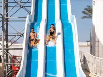 мало Пальм,деревьев ,ландшафного дизайна подтянуть хорошенько надо бы,.а в аквапарке стоят очень недоброжелательные парни,которые не знают что и как учить безопасности.Сыновья ударились при спуске ,а они говорят, что надо было ноги по иному ставить мы не виноваты.
