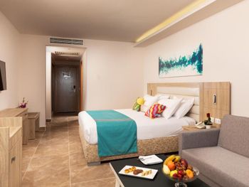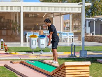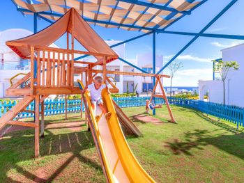 Очень маленький выбор по питанию на завтрак,в основном омлет но готовили вкусно,,из фрукт только яблоки ,бананы и апельсины.Дыня была несколько дней . Вода в номере комнатной температуры только.Не хватало для детей больше выбора качелей на детской площадке(Одна качеля на площадку и очередь на нее)и развлекательных представлений.Если были мини танцы то каждый день одно и тоже с аниматорами ,программа не менялась.