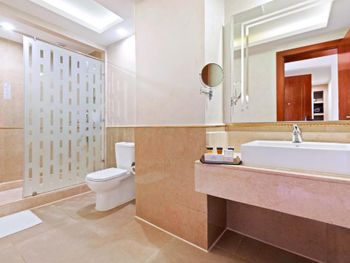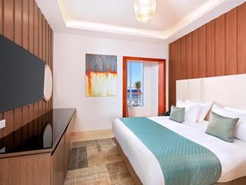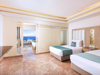 Встретили нас на ресепшене при заселении с какими-то странными шутками. Может менеджер и не шутил, а хотел с нас заработать деньги. Говорил, что у нас забронирован номер не family , а стандарт. После того как мы показали бронь на букинге, стал смеяться и делать вид, что он шутит. Ужасное ощущение , мы с дороги устали и хотели быстрее пойти в номер с детьми, чтобы отдыхать, вместо нормального приветствия , какие-то странные «шутки», которые выглядели как вымогательство или обман на номер. В номере из канализации воняло мочей постоянно. Воду ужасная, ей даже рот полоскать нельзя. На этой воде готовят еду, расстройства желудка у всей семьи даже после возвращения домой. В Мини баре только вода. Щетки зубные дали только при заселении, тапочки как -будто из бумаги. Лосьон для тела пришлось выпрашивать. Полотенца постоянно не докладывали. Ела очень примитивная. Из фруктов только : яблоки, бананы и апельсины, редко гуава. Первый раз в жизни видела алкоголь в пластиковых бутылках ( джин, ром, водка) такое даже страшно пробовать. Бутылки в водой с газом не дают на большой стол, наливают только по стаканам у бара. Персонал в отеле к отдыхающим относится по не братски , моих детей постоянно пытались трогать весь персонал за голову, уборщики грязной посуды подходили и щелкали у лица детей во время еды у лица. Дикая дикость, отсутствие сервиса . Это не пятизвездочный отель , а максимум 3+. На территории работает дайвинг центр и сотрудники бесконечно ходят по пляжу и подают всякие услуг : Багги о пустыня, полет на парашуте, катание на лодке и тд. Мы купили багги, когда приехали, вместо 5 двухместных багги, оказалось 4 . Один из которых не заводился, через полчаса попыток он всё же завелся. Мы узнали в пустыню, там сделали остановку и Багги больше не завелся. Возвращались все друг на друге. Вместо 1 часа 20 минут которые мы оплатили, мы катались 20 минут. В конце записали видео, где человек, который нас катал, сказал, что деньги нам вернут там, где мы оплачивали.
