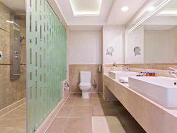 Современные номера и люксы расположены прямо на береговой линии. В числе удобств просторных номеров — телевизор с плоским экраном и меблированный балкон с видом на сад, бассейн или море.