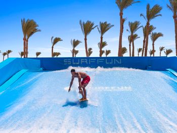 Не понимаю восторженных отзывов людей. Отелю есть куда расти. 👎Еда Еда не вкусная, напоминает школьную столовку. На завтрак можно кушать только омлеты, которые готовят перед вами, и немного еще блины (pancake). Обед, ужин - как повезёт. В целом, с голода не умрёшь, но и добавки точно не попросишь. На 3 день отдыха стабильно пропускали обед или ужин и ходили в местные рестораны, чтобы перебить ту безвкусицу, что предлагает отель. Иногда давали рыбное филе, которое было более менее съедобно, и креветки, которые по ощущениям лежали где-то несколько дней и только после этого их начинали готовить. Алкоголь - отстой. Только пиво можно пить. Фрукты, сладости - окей, но тоже не топ, очень-очень средне. Манго ни разу кстати не было, хотя Египет ими славится. Не понравилось еще, что не всех столах были приборы (или были, но персонал их уносил вместе с остатками еды на тарелке) и из-за этого приходилось ходить по другим столам, чтобы найти себе вилку 😑 👌Обслуживание и персонал При заезде дали номер где-то на отшибе за территорией самого отеля у дороги. Хотя бронировали с видом на бассейн. Пожаловались на ресепшене и нам оперативно его поменяли. К слову сказать, что если вы не собираетесь каждый день нырять в крохотный бассейн, то такой номер вам может быть не особо нужен, потому что с 20:30 и до 23:00 включается дискотека и играет музыка, которая хорошо слышна в номере. Уборка номера каждый день, без каких-то украшений из тканей, как это делают в других отелях 🤷Развлечения За ними стоит идти в соседний отель - Laguna Vista. Там аквапарк, крутые бассейны, йога, серф (который не понятно по какому расписанию работает), йога в море и под пальмами, а также теннисные корты. Турецкий хаммам стоит 100$. Спортзал небольшой, но всё необходимое вроде как есть. Сотрудник сказал, что внешний вид не соответствует требованиям и можно заниматься только 10 минут, что очень странно. 👎Море Глубина небольшая, довольно скучно там плавать, сноркелинг невозможен, рыб крайне мало
