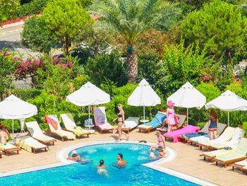 Отель расположен на очень маленькой территории, отделенной от других отелей и дороги небольшими посадками. Все свободное пространство занимает бассейн, возле которого проходит так называемая анимация. С 21.30 до 23.30 ч музыка гремела так, что вынуждена была купить беруши. С первого этажа попросила пересилить меня на 4 эт., в надежде, что там тише, но она не оправдалась, было слышно (с закрытой дверью балкона) не только нашу анимацию, но и соседний отель, как будто они соревновались в том, кто кого переорет. По всему отелю пахло жаренными продуктами, а утром в номере шли невыносимые запахи из туалета. Питание в отеле не для людей, которые заботятся о своем здоровье, используется в приготовлении маргарин (я это выяснила точно), через три дня уже пошла в магазин за продуктами и стала ужинать в кафе и ресторанчиках в Кемере. Не рекомендую этот отель людям, которые приехали отдохнуть в тишине, а также семьям с детьми и пожилым людям. Цена абсолютно не соответствует качеству отеля.