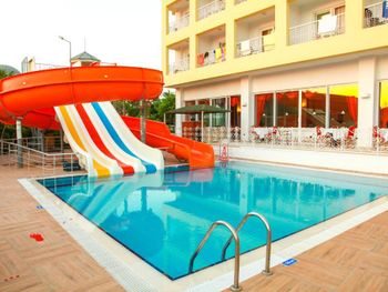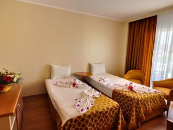 Кормят ужасно не вкусно. Выбора нет вообще. Люди травятся все время. Травившись и маленькие дети и взрослые. За время в отеле мы сами отравились 3 раза. Каждый раз на 5 дней с болями в животе, поносом, рвотой. Убирают просто ужасно. Посмотрите фотографии ниже это уже я фотографировала после уборки!!! Это при том, что у меня маленький ребёнок и я просила лучше убирать. В отеле процветает воровство. Несколько раз люди скандалили на ресепшн. В том числе воруют во время уборки пляжные полотенца и не возвращают залог 5 долларов. Управляющий Ахмет просто не подходит для своей должности. Когда я показывала видео с ужасной уборкой он говорил: «не нравится - съезжайте». Жаловались в букинг, но букинг не помог вернуть деньги и съехать. Ахмет же просто штраф 900 евро если мы съедим. Ксения на ресепшн вообще все время старалась усугубить ситуацию - неверно переводила слова управляющего. Я понимаю по турецки. И была в шоке когда Ахмет сказал что штраф за то, что ребёнок воднорастворимый красками нарисовал на двери 200 лир, а Ксения перевела как 250 евро. Кроме того, Ксения и Ахмет когда говорят с друг другом на турецком используют нецензурные слова в отношении посетителей. Кстати, краска вытиралась просто влажной тряпкой, но уборщице было лень это сделать. Много раз отдыхающие скандалили Ксенией и она ни раз никому не помогла. Крики на ресепшн почти каждый день. Грязь везде. В бассейне кто-то осуществил акт десикация, так они просто выловили кал без какой-либо дезинфекции. Посуда вся побитая и грязная. Как-то ночью искала на кухне чашку ребёнка, так у них там грязная посуда стоит всю ночь. Бегают тараканы. В номере все поломано. Говорили, что воняет из вентиляции они прислали работника, который побрызгал парфюмом у нас в номере! Мы были в шоке! Ахмет постоянно всем угрожает. Пролили сок на простынь - штраф 500 лир или сказал самим стирать. В лифтах постоянно застревали люди. Ужасный отель. Грязь, хамство, разруха. Хотите за это ещё и заплатить? Поезжайте в этот отель.
